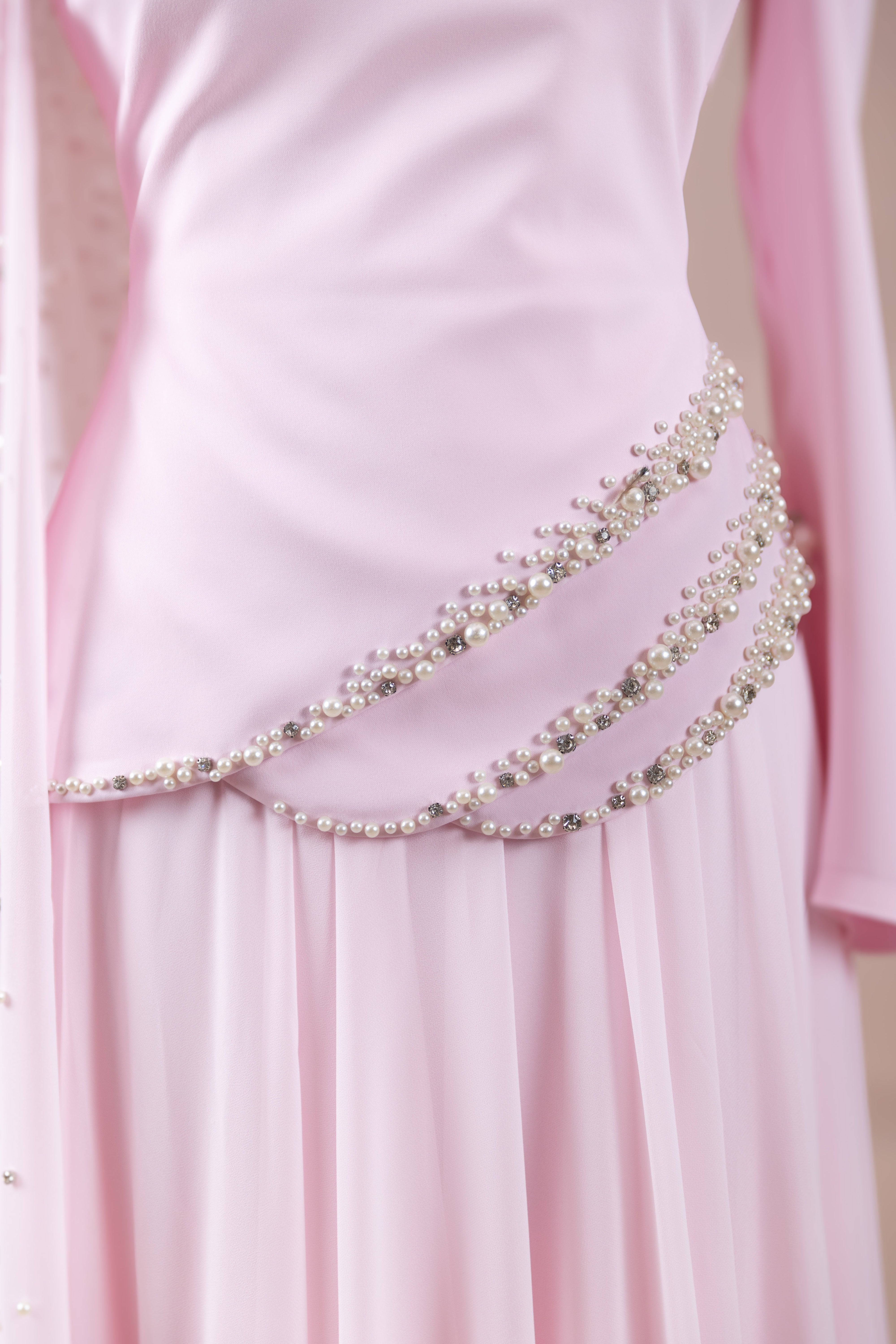 – Überkreuztes Steinverziertes Band am Taillenbereich